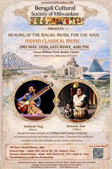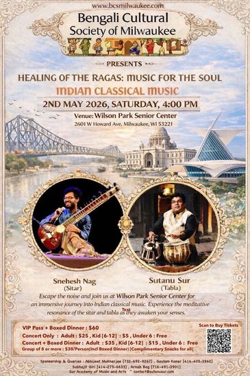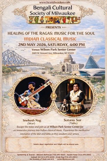 As part of our commitment to celebrating Bengali culture and traditions, BCSM proudly introduces the Indian Classical Concert - a musical journey honoring the rich heritage of Indian classical music.